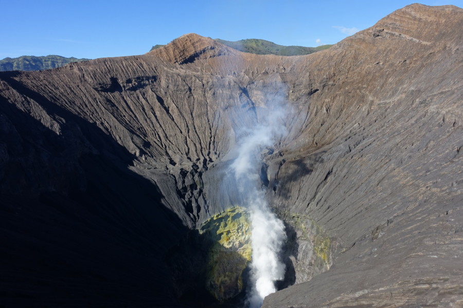 Po wschodzie kontynuujemy podróż jeepem w dół do kaldery wulkanu, często wciąż pokrytej mgłą wczesnym rankiem. Mgła w połączeniu z szarą, pokrytą popiołem ziemią tworzy niezwykłą atmosferę, często porównywaną do powierzchni księżyca. Od podnóża wciąż dymiącego krateru Bromo przejdziemy przez zestaw schodów, które prowadzą do krawędzi wciąż aktywnego krateru Bromo.