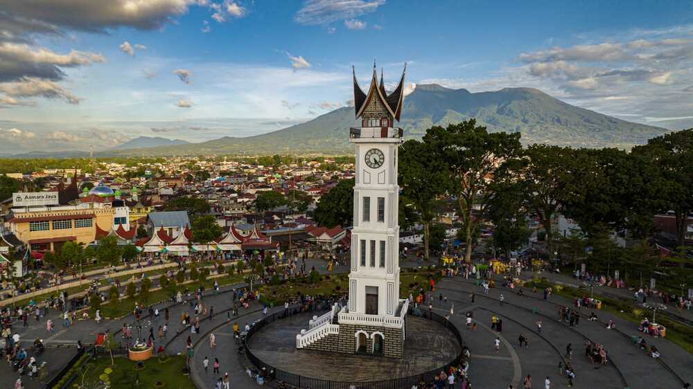 Położone 930 m n.p.m, Bukittinggi (dawniej nazywane Fort De Kock przez Holendrów) ma chłodny klimat i jest otoczone przez trzy wulkany: Tandikat, Singgalang i Merapi. Centralnym punktem orientacyjnym jest wieża zegarowa miasta, zwana przez miejscowych Jam Gadang.